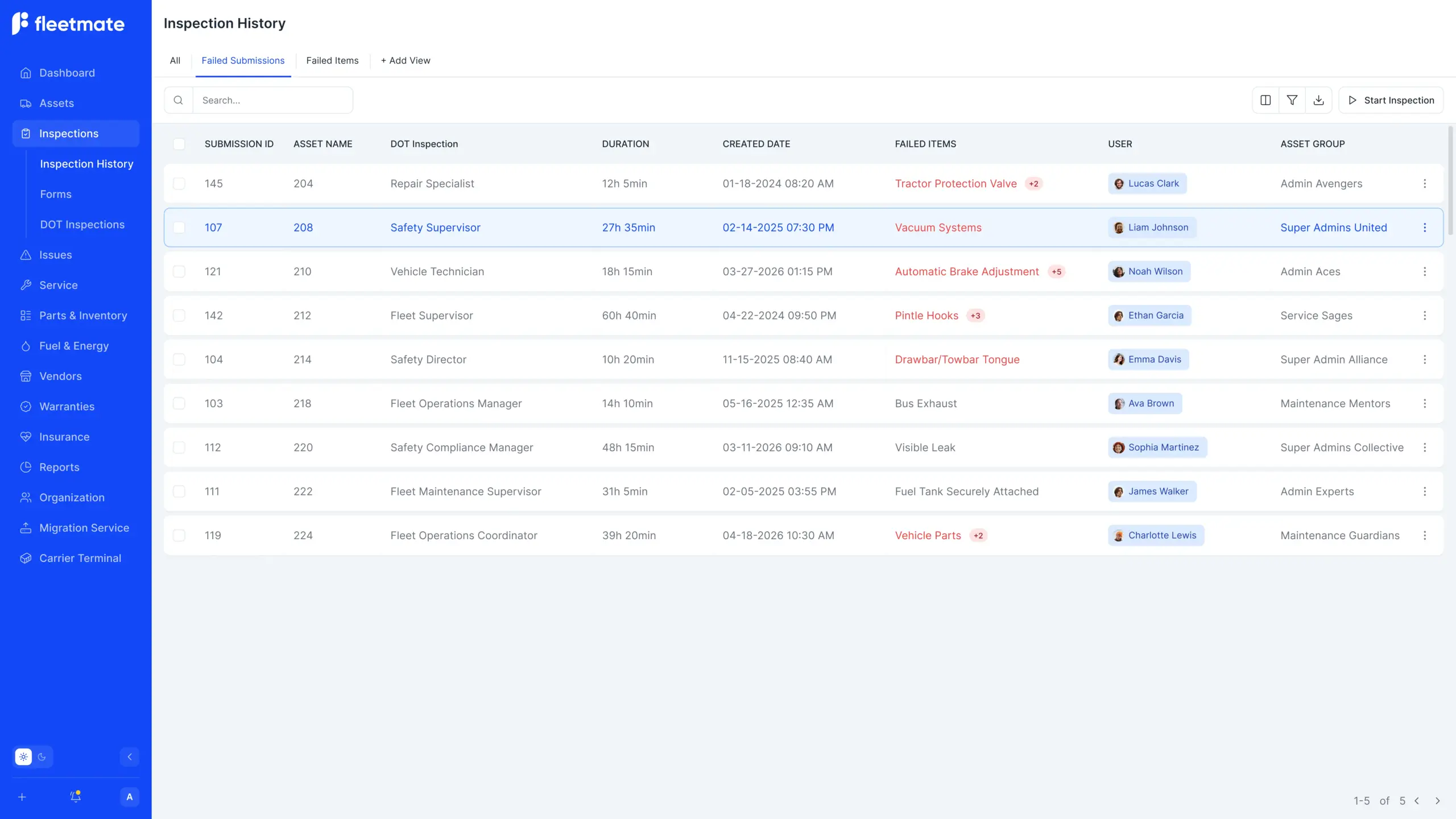 Use pre-built forms or create your own to match your fleet’s specific inspection needs.