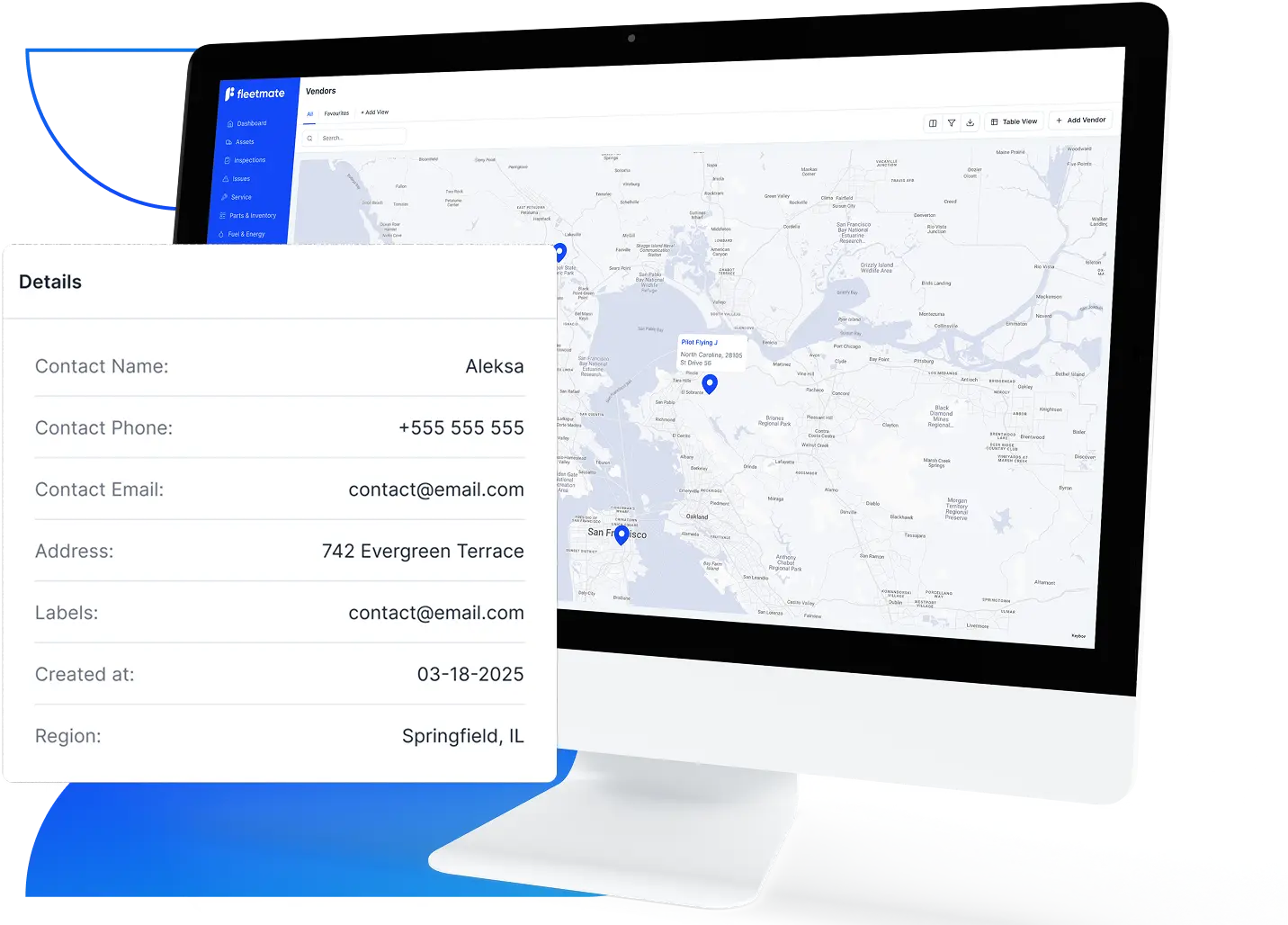 Keep all your vendors in one place, know who to trust for what, and contact them in seconds. From parts suppliers to service shops, you’ll always know who does what and where they’re located.