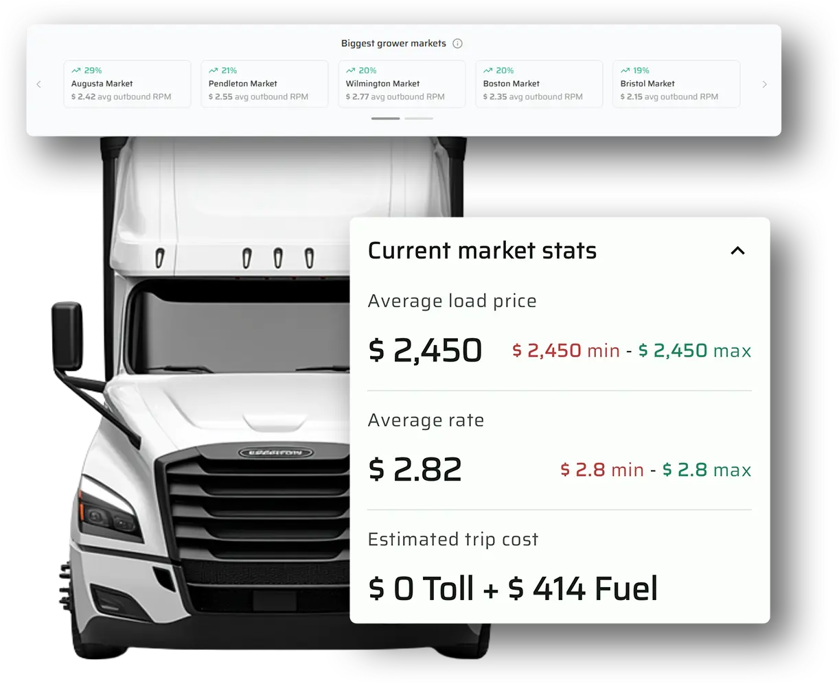 Get up-to-date rate estimates based on live market conditions to book faster and win more loads at the right price.